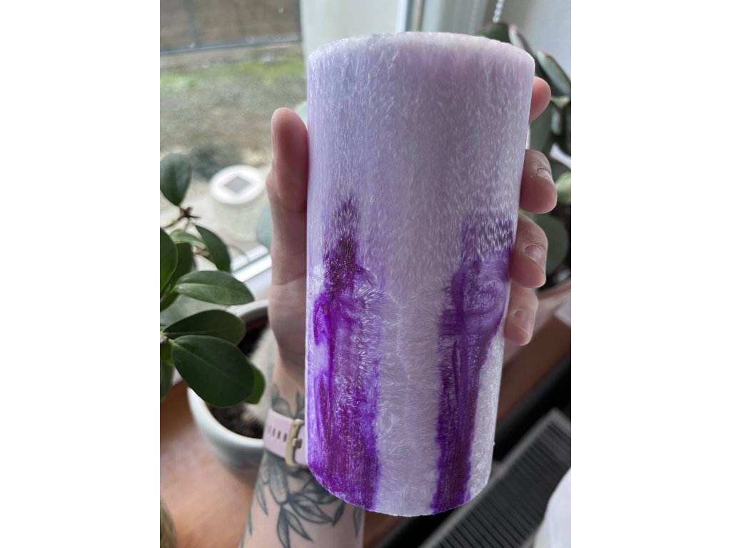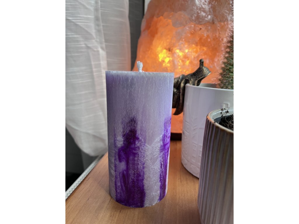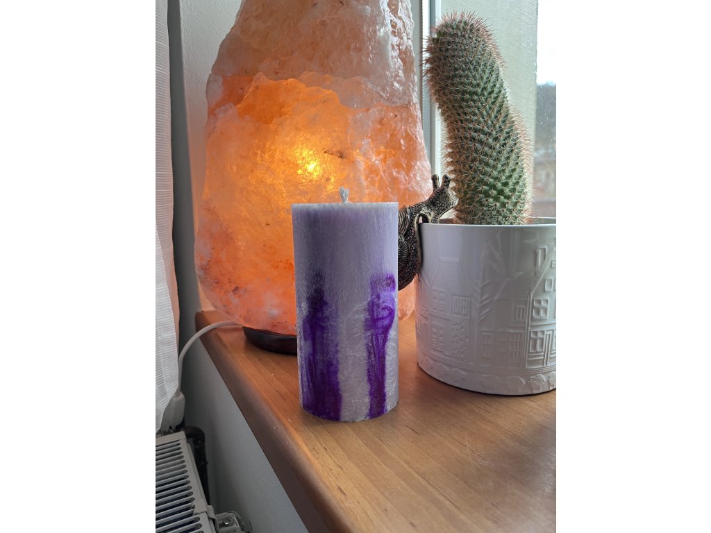 Tato ručně litá svíčka z palmového vosku v odstínech fialové působí jemně, tajemně a zároveň velmi harmonicky. Každá svíčka je originál – přirozená krystalická struktura palmového vosku vytváří neopakovatelný vzor, který dává každému kusu vlastní charakter.